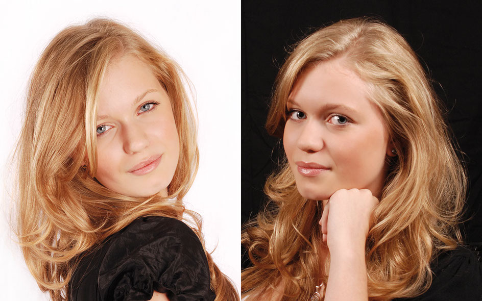 Porträtaufnahmen mit und ohne Make-Up. Die besten Bilder mit Beauty Retusche.